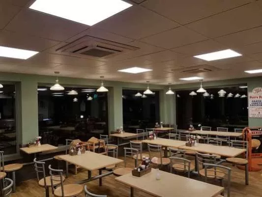 Jacks Fish and Chips in Bagshot. Replacing fluorescent lights with new LED ceiling panel lights and ...