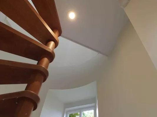 An LED downlight illuminating a spiral staircase and operated by a movement sensor. A sensor had to ...